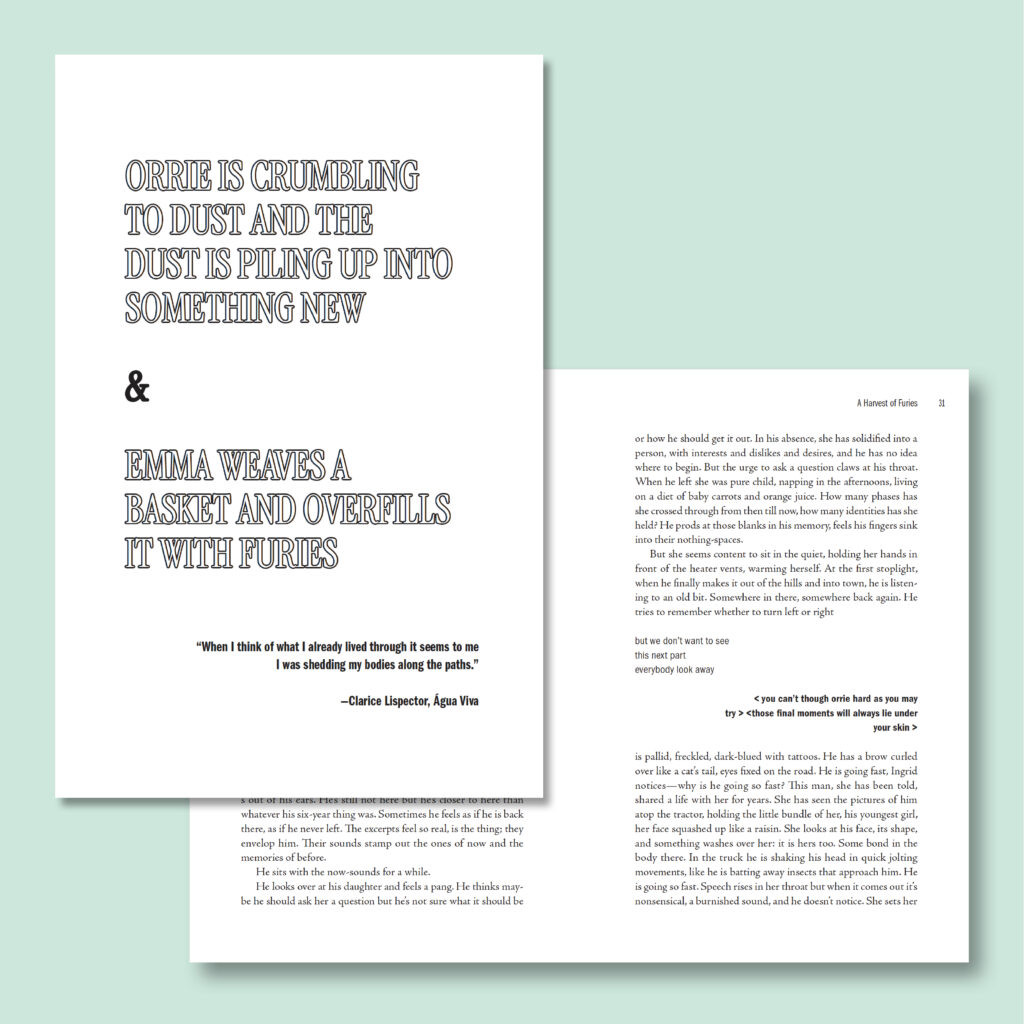 Lanternfish Press publishes rare and strange fiction that is both literary and speculative. A Harvest of Furies is a gothic novel with multiple design elements. It features special formatting requirements (such as “chorus” sections, multiple voices, and a recurring phrase, “glimmer”), which required distinctive styling to guide the reader through the novel. This was one of my favorite projects to work on!